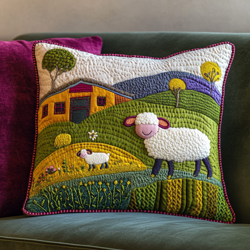 Farm House Sheep DAI150125139 Quilted Pillow Case