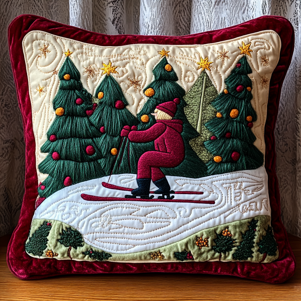 Christmas Ski DAI181124089 Quilted Pillow Case