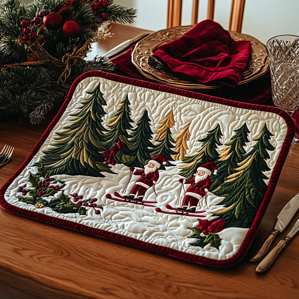 Skiing Santa DAI181124116 Quilted Placemats