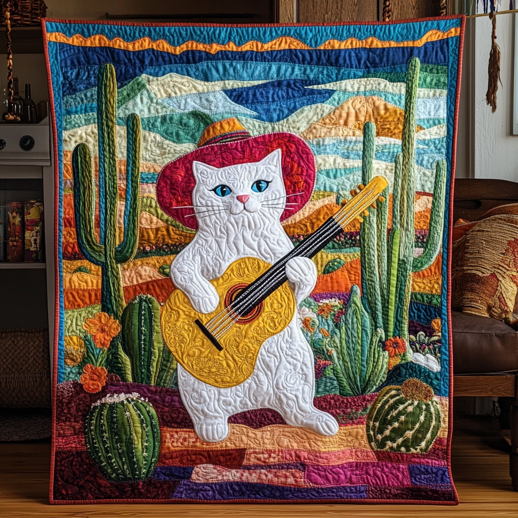 Desert Guitar Cat DAI241224302 Quilt Blanket
