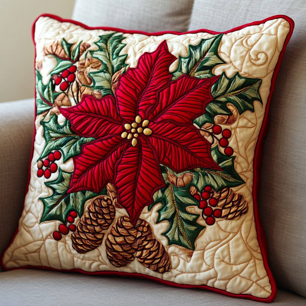 Christmas Poinsettia TAI141124422 Quilted Pillow Case