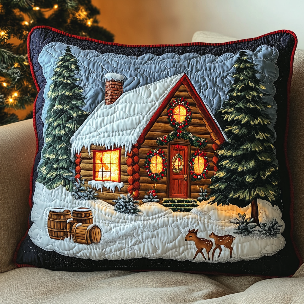 Christmas House Deer TAI141124434 Quilted Pillow Case