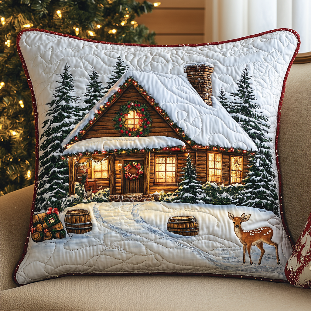 Christmas House Deer TAI141124438 Quilted Pillow Case