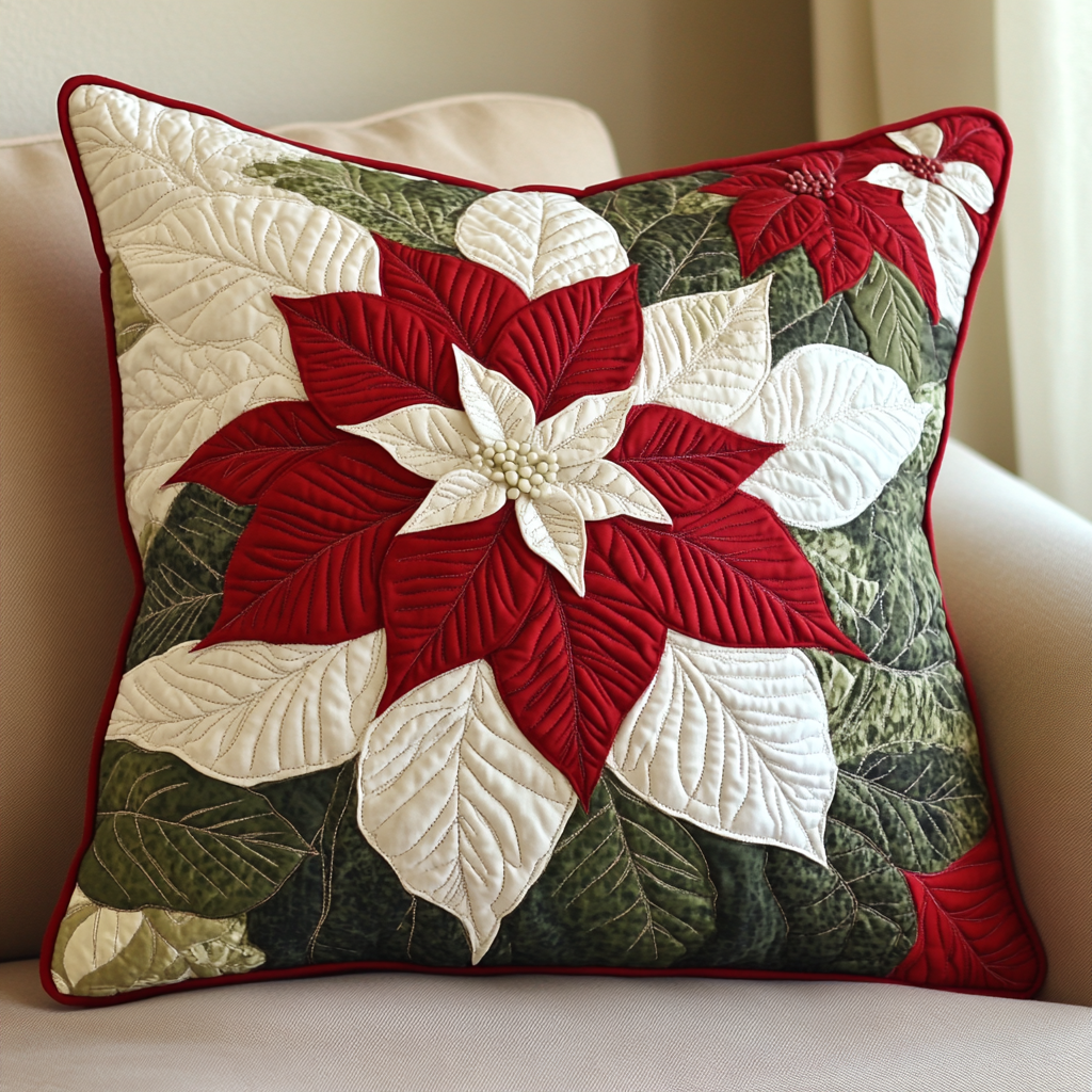 Christmas Poinsettia TAI141124449 Quilted Pillow Case