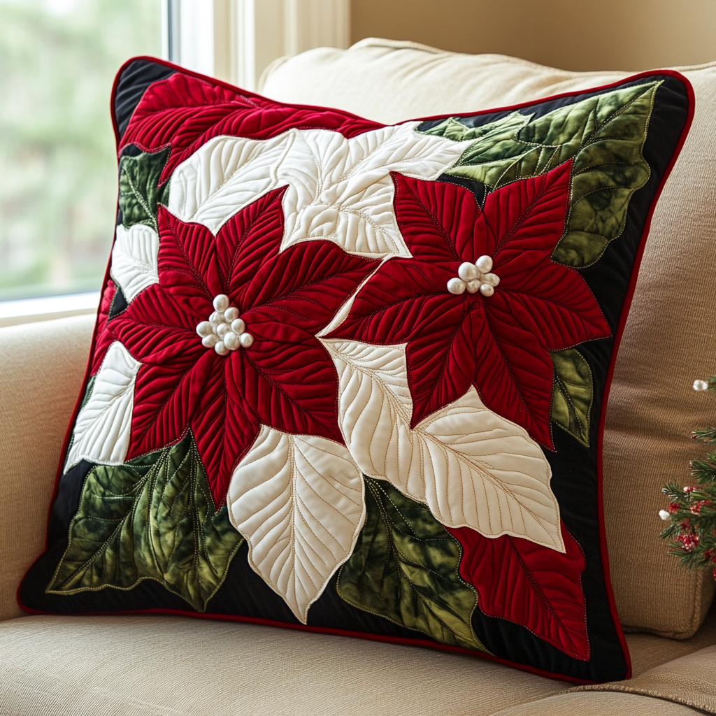 Christmas Poinsettia TAI141124462 Quilted Pillow Case
